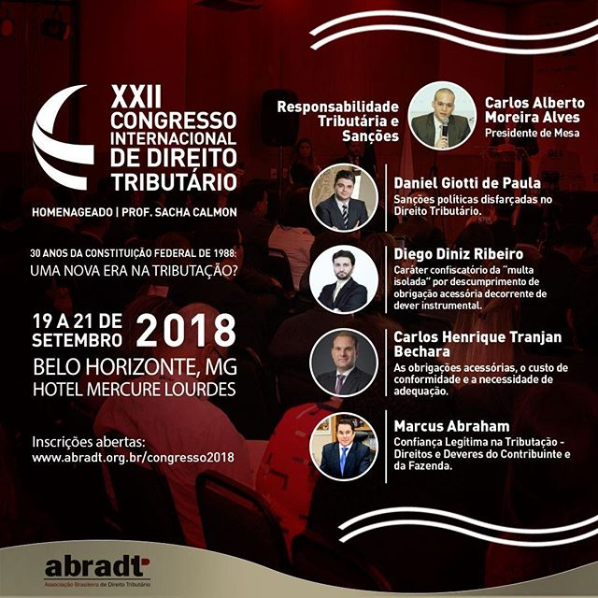 A Federaminas é uma das entidades que apoiam o congresso promovido pela Associação Brasileira de Direito Tributário (Abradt), que tem como tema central “30 anos da Constituição Federal de 1988: uma nova era na tributação? e debate questões de relevância e contemporaneidade.