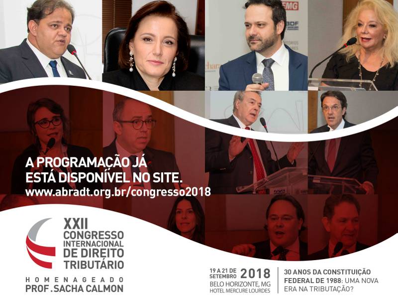 A Federaminas é uma das entidades que apoiam o XXII Congresso Internacional de Direito Tributário, que a Associação Brasileira de Direito Tributário (Abradt) realiza no período de 19 a 21 de setembro no Hotel Mercure Lourdes, em Belo Horizonte. O tema central é “30 anos da Constituição Federal de 1988: uma nova era na tributação?”, debatendo questões de relevância e contemporaneidade.