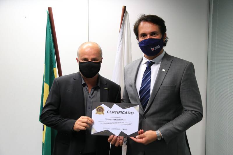 O Presidente da Federaminas, Valmir Rodrigues, se encontrou esta semana (10/02) com o Sr. Fernando Passalio, Secretário-adjunto da Secretaria de Desenvolvimento Econômico de Minas Gerais, e com o subsecretário de Desenvolvimento Regional, Douglas Cabido. Na oportunidade, os secretários foram homenageados pela Federaminas e receberam o certificado Mérito Empresarial Heróis e Heroínas.