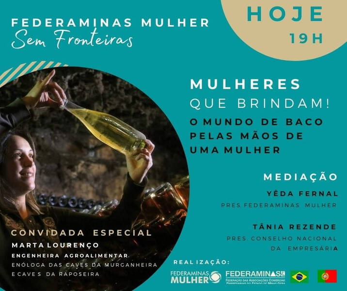 Para encerrar o mês internacional das mulheres, a Federaminas Mulher realizou no dia 31, às 19h, o lançamento do projeto Mulher Sem Fronteiras, através da Live: Mulheres que brindam – Um dos segredos mais bem guardados de Portugal. O evento contou com a participação efetiva de diretoras das 40 Câmaras de Mulheres vinculadas à Federaminas Mulher no estado de Minas Gerais e participações importantes, como da convidada a engenheira agroalimentar e enóloga da Murganheira Marta Lourenço, que contou de forma muito singular sua trajetória profissional at se tornar hoje uma das enólogas mais premiadas de Portugal. A mediação foi realizada pelas presidentes da Federaminas Mulher Yeda Fernal e do Conselho Nacional da Mulher, Tânia Rezende. Um fator de relevância na live foi a participação masculina, além do presidente da Federaminas Valmir Rodrigues da Silva, que apoiou o movimento, tivemos a participação do Viice-Presidente da Câmara Portuguesa de Comércio no Brasil em Minas Gerais, Sr. Cláudio Motta, do jornalista Sr. João Carlos Amaral que interagiram e trocaram experiências, além de outros convidados.