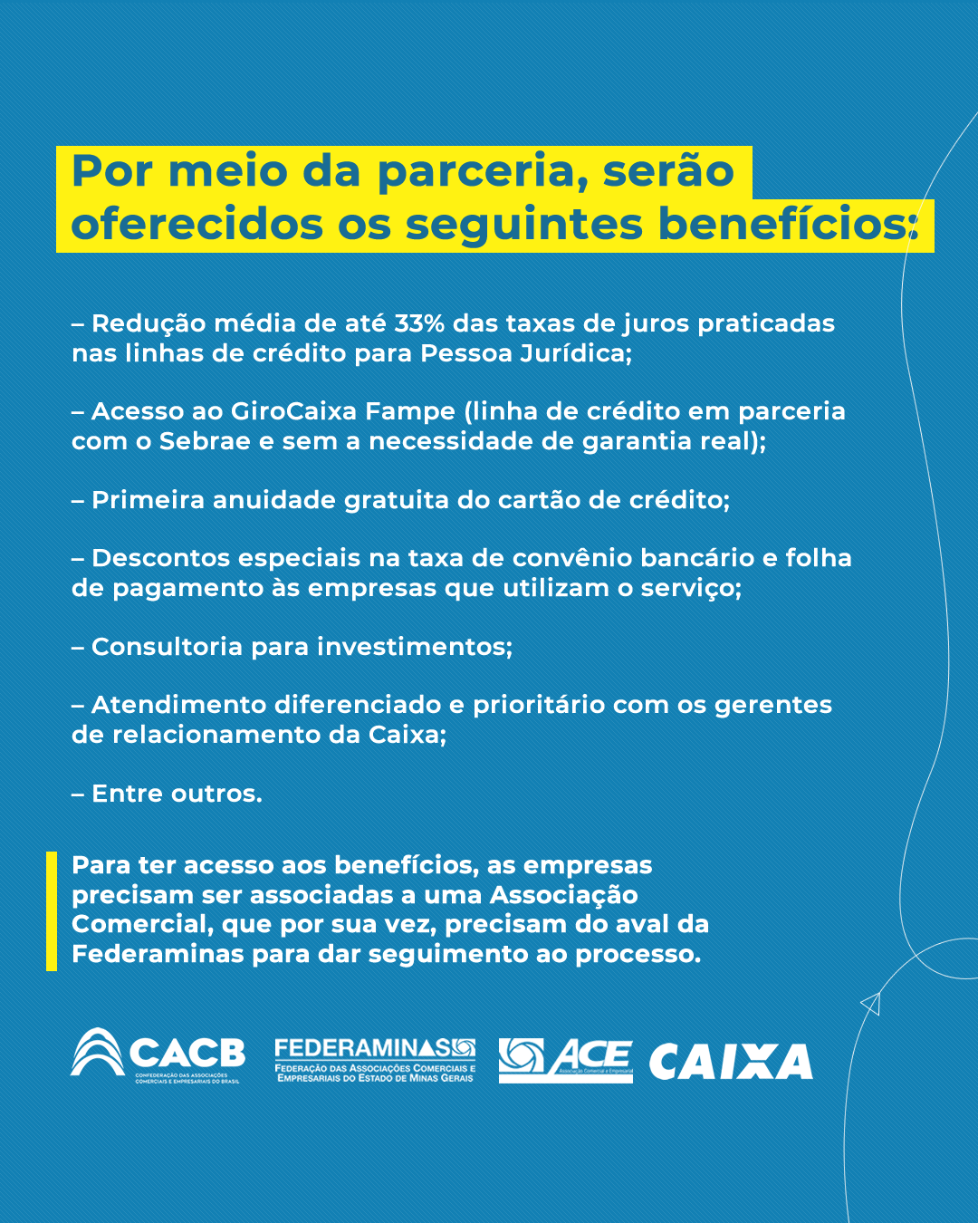 – Acesso ao GiroCaixa Fampe (linha de crédito em parceria com o Sebrae e sem a necessidade de garantia real);