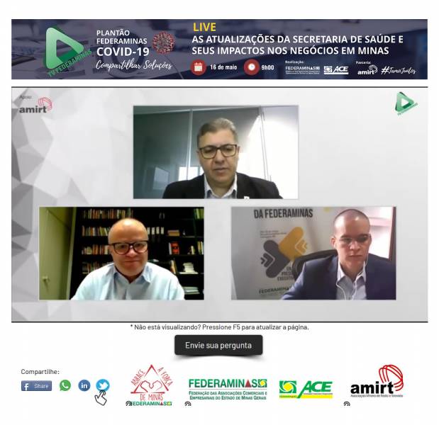 O presidente da Federaminas agradeceu a disponibilidade do secretário de Saúde por participar da live e esclarecer as dúvidas dos associados e reforçou a preocupação da entidade com a saúde e vida das pessoas, mas também com a crise econômica que tem feito muitos empresários fecharem as portas de seus empreendimentos. “Seguimos buscando alternativas seguras para a retomada das nossas atividades conciliando com todos os cuidados com a vida das pessoas”, concluiu Valmir Rodrigues.