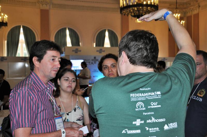 Dando continuidade ao tour do conhecimento entre os salões de evento do Grande Hotel, os participantes se dirigiram ao salão Belo Horizonte para encontrarem jovens empreendedores com ideias e projetos voltados para atender os novos e emergentes mercados da tecnologia.